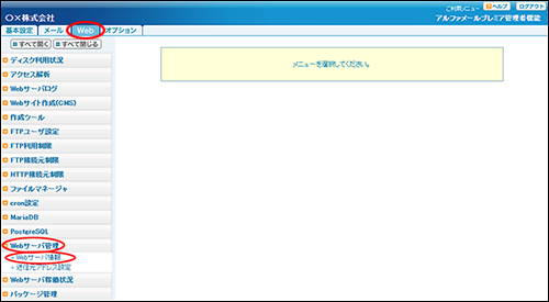 「Web」をクリックし、「Webサーバ管理」→「Webサーバ情報」をクリックします。