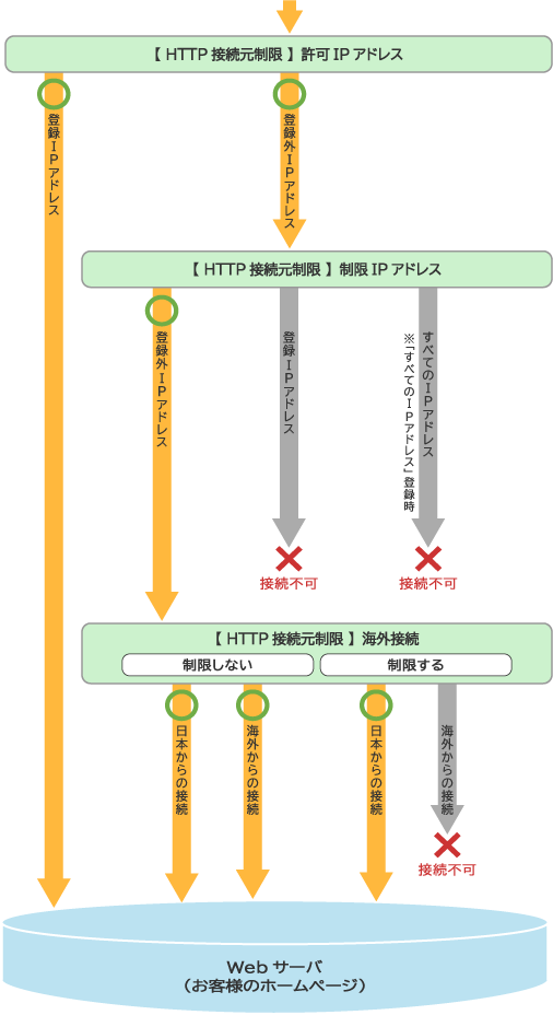 HTTP接続元制限機能の処理順序は、次の通りです。設定の前に、必ずご確認ください。