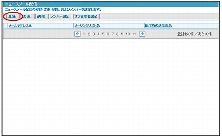 step1 ニュースメール配信画面を表示し、「登録」ボタンをクリックします。