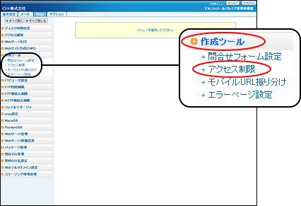 step1 Web画面を表示し、「作成ツール」→「アクセス制限」の順にクリックします。