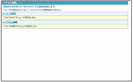 アクセス制限の設置は、あらかじめアルファメールプレミアのWebサーバに、お客様が作成されたホームページデータが転送されている場合のみご利用いただけます。