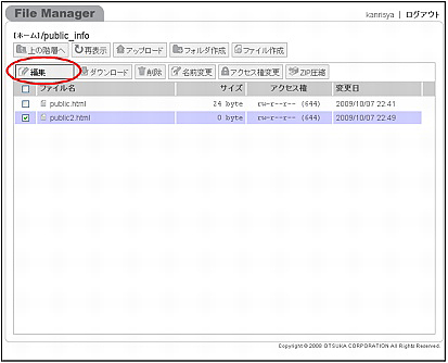 step1 ファイルリスト画面を表示し、編集するファイルを選択して「編集」ボタンをクリックします。