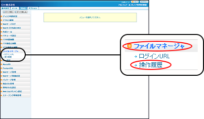 step1 Web画面を表示し、「ファイルマネージャ」→「操作履歴」の順にクリックします。
