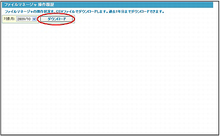 過去1年(13ヶ月)のファイルマネージャの操作履歴を、月単位でダウンロードします。
