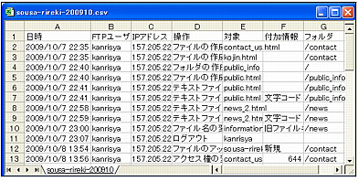 ※ファイルには、該当する月に操作した回数分の履歴がすべて出力されます。
