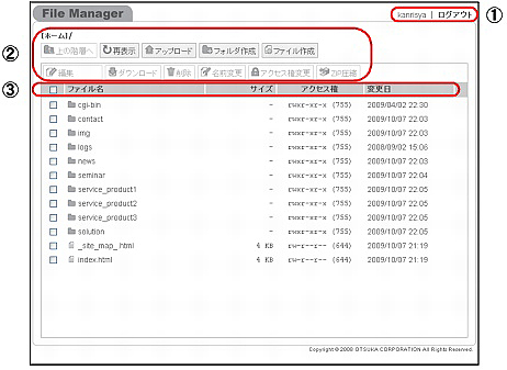 | ログアウト | ファイルマネージャからログアウトします。 |