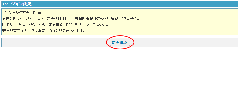 「変更確認」ボタンをクリック後、パッケージの変更処理が完了するまでは同じ画面が表示されています。「変更確認」ボタンをクリックしても、画面は遷移しません。