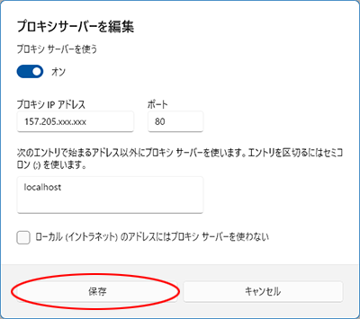 必要事項を入力し、「保存」ボタンをクリックします。ポイント現在の設定内容をメモなどに残してから設定を行ってください。