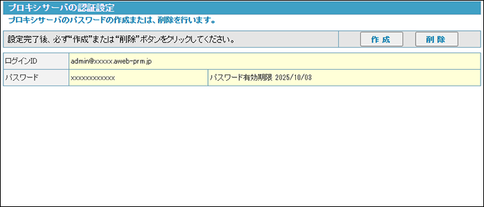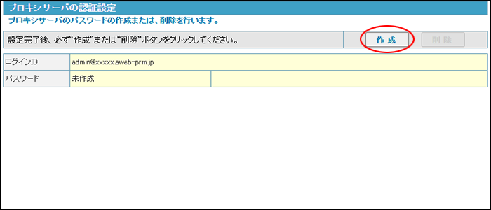 パスワードを未作成の場合は、「作成」ボタンをクリックし、パスワードを作成します。