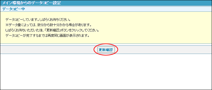 データのコピー処理には数分~数十分かかりますので、しばらくお待ちいただいた後、「更新確認」ボタンをクリックしてください。
