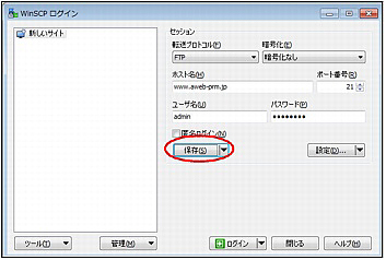 パスワードを保存 パスワードを保存しない場合、チェックしません。