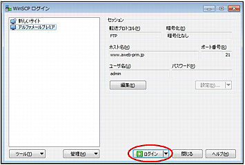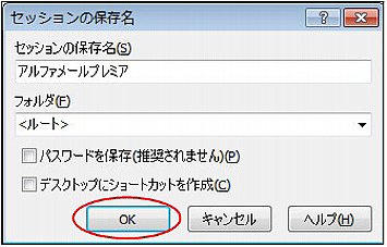 step4 手順3で保存したセッション名をクリックし、「ログイン」ボタンをクリックします。