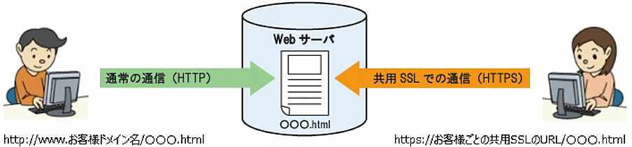 通常の通信(HTTP)も共用SSLでの通信(HTTPS)も、同じWebディスク領域にあるデータにアクセスします。