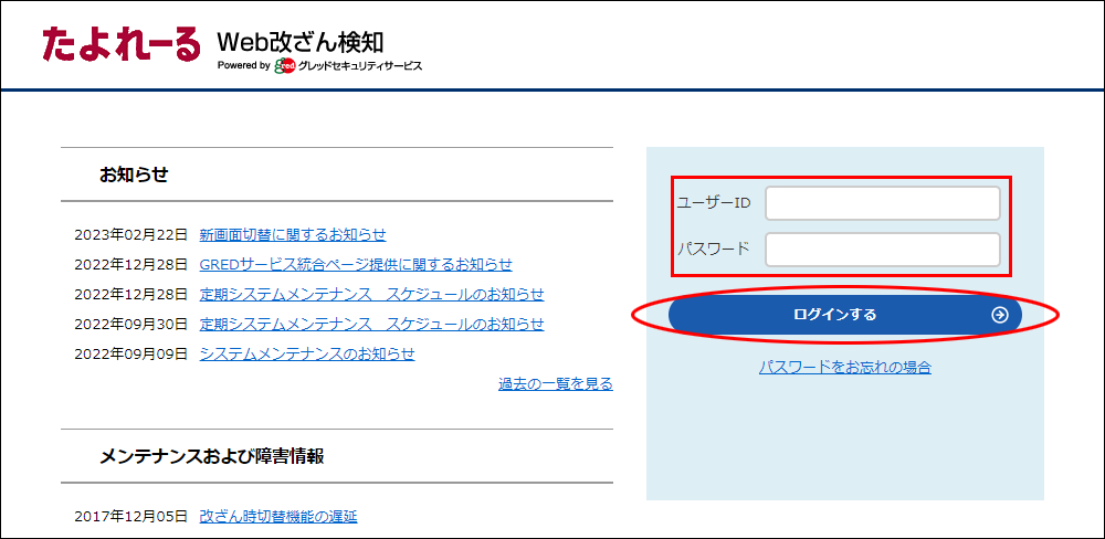 ユーザーIDは、gredセキュリティサービスから送信される下記メールに記載されています。初めてログイン画面からログインするには、お客様がパスワードを設定する必要がございます。