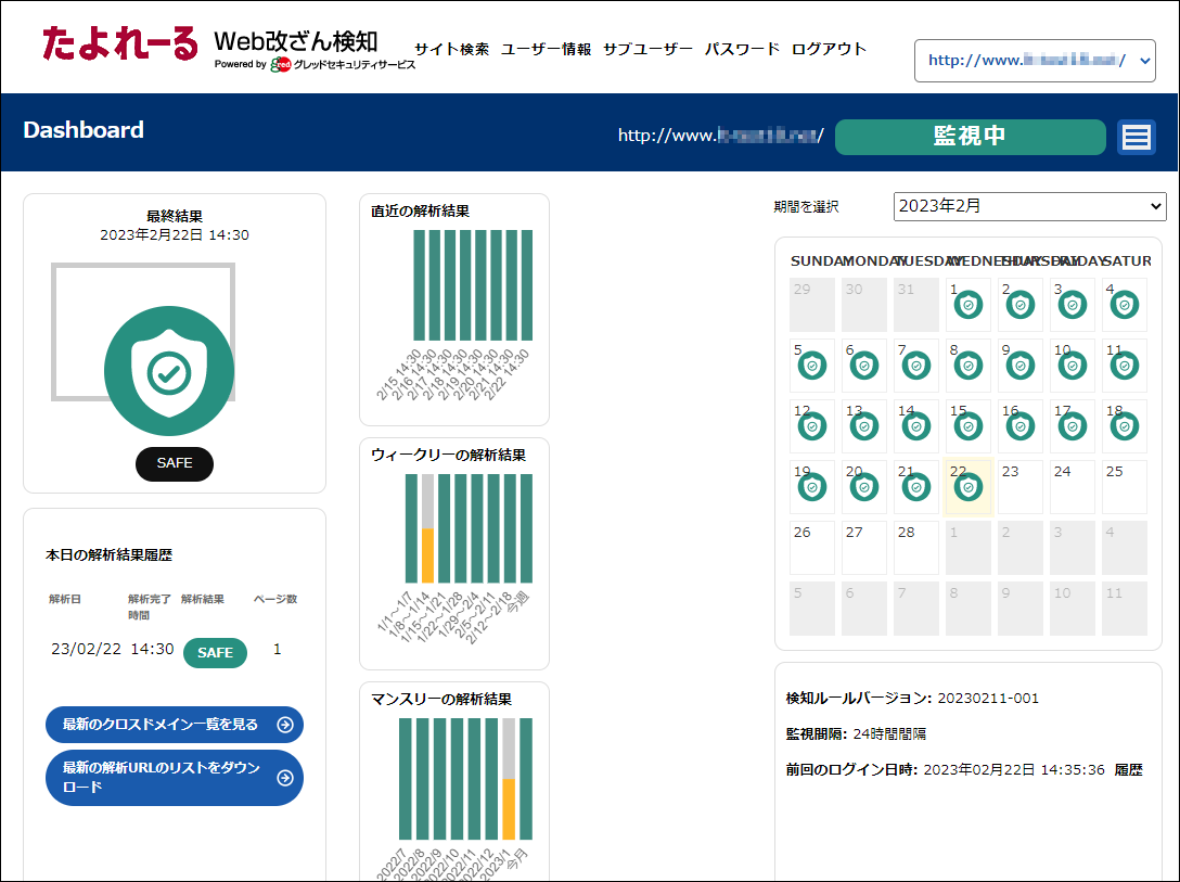 step3 Web改ざん検知画面が表示されます。