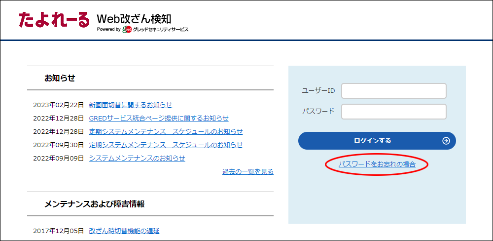 Web改ざん検知にログインする際のパスワードを再発行します。