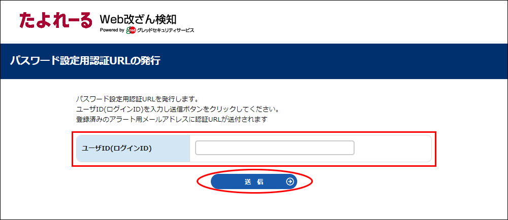 step2 ユーザIDを入力し、「送信」をクリックします。