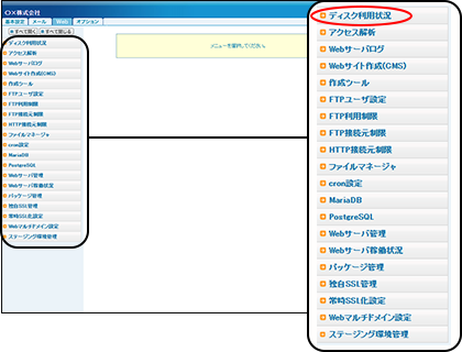 Webサーバおよびメールサーバのディスク容量は、お申し込みのタイプによって異なります。
