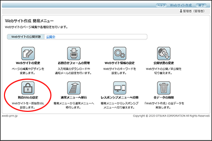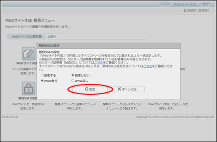 Webサイト作成機能で作成したすべてのページが、独自SSLで公開されるよう一括設定します。