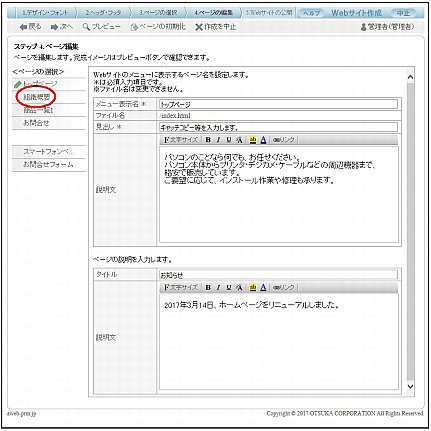 ページ編集:トップページ画面が表示されます。