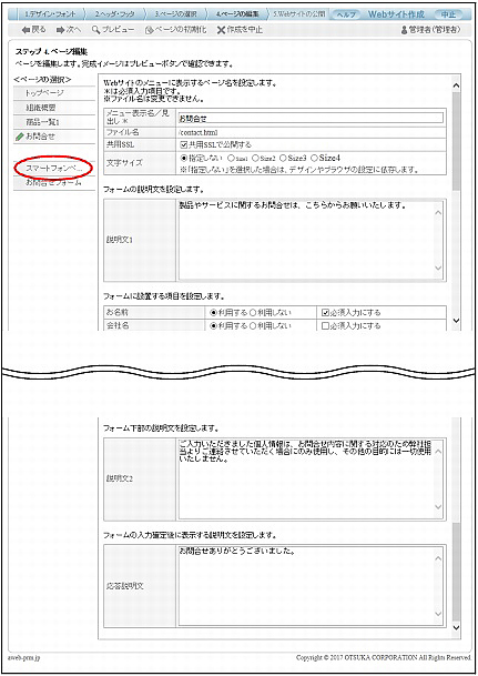 | スマートフォンページの設定 | |