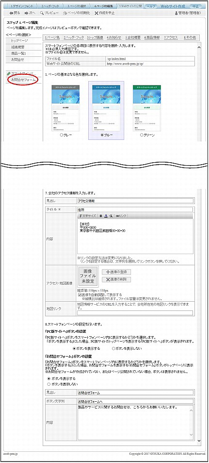 ページ編集:お問合せフォーム画面が表示されます。