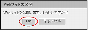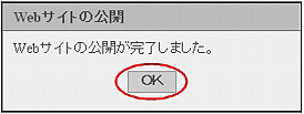 「OK」ボタンをクリックすると、step7のページの選択画面で選択したページすべてが公開されます。操作前は非公開の状態であっても、公開となりますので、ご注意ください。