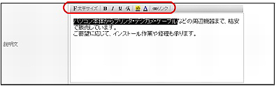 「説明文」は、入力した文字にリンクを設定できます。詳しくは、「リンクを設定する」をご覧ください。