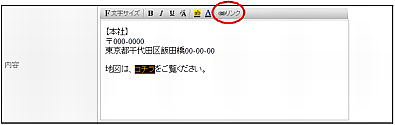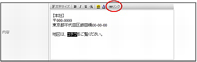 | 地図リンク | 会社所在地の地図を表示する場合、地図情報サービスのURLを入力します。 |