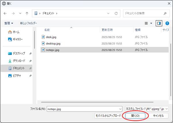 step3 登録する画像を選択し、「開く」ボタンをクリックします。