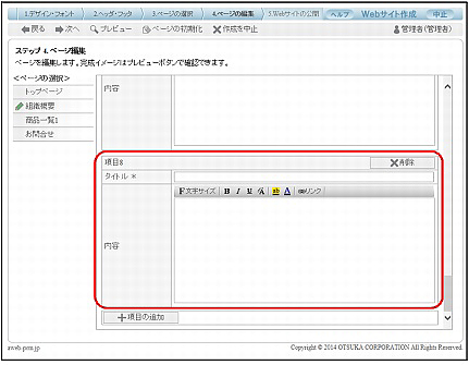 Webサイトを作成(変更)している途中で、データを保存することはできませんので、ご注意ください。