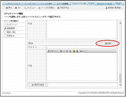 step1 不要な項目名の右横にある「削除」ボタンをクリックします。