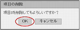 項目の削除画面が表示されます。