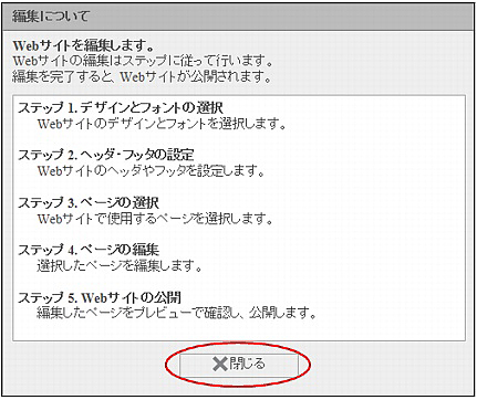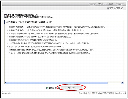 「「Webサイト作成」のご利用にあたって」画面が表示されます。