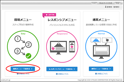 step3 「簡易メニューで始める」ボタンをクリックします。