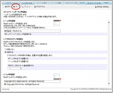 | フッタの設定 | Webサイトのフッタに表示する内容を入力します。 |