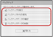 | バックアップデータの確認 | 現在保存されているバックアップデータの内容を確認できます。 |
