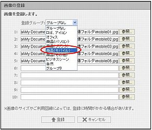 登録した画像は、最大10グループに振り分けて管理することができます。グループ名は、任意の名前を設定することができます。