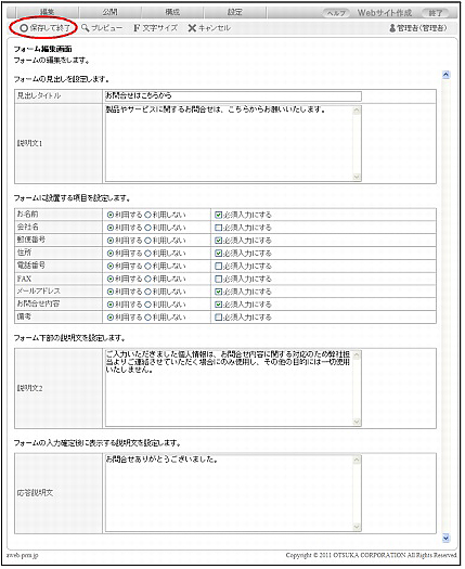 step2 必要事項を入力し、「保存して終了」をクリックします。