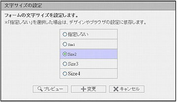 「文字サイズ」をクリックすると、文字サイズの設定画面でお問合せフォームの文字サイズを変更できます。