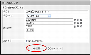 step1 フォーム編集画面を表示し、内容を変更する項目を選択して「変更」をクリックします。