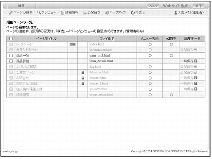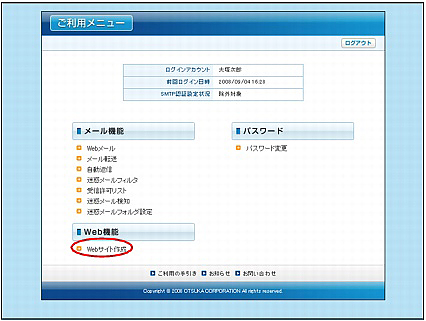 ご利用メニューを表示し、「Webサイト作成」をクリックします。