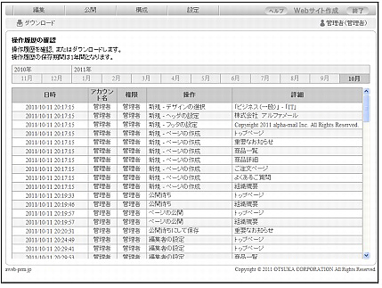 | 権限 | 操作を行ったアカウントの権限(管理者・編集者)が表示されます。 |