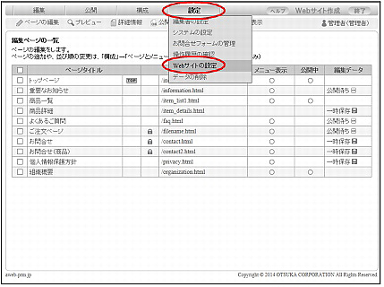 ※Webサイト作成画面の表示方法→「Webサイト作成を表示する(管理者の場合)」