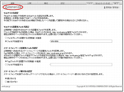 Webサイト作成(CMS)機能以外でTOPページを作成し、その配下にWebサイト作成(CMS)機能で作成したページを設置して運用する場合や、スマートフォンページの振り分け設定を変更する場合などに利用してください。