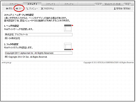 | フッタの設定 | Webサイトのフッタに表示する内容を入力します。 |
