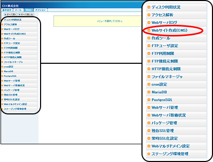 ※簡易メニューの操作方法→「Webサイト作成(CMS)・簡易メニュー」