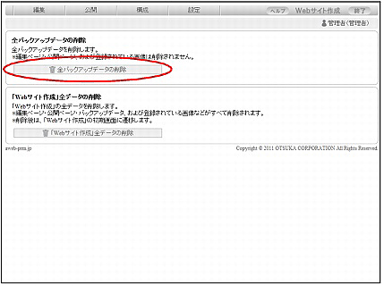 編集中のページがある場合は、「全バックアップデータの削除」を行うことができません。編集作業を完了させてから行ってください。