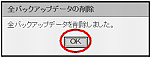本機能を実行するとバックアップデータがすべて削除されます。削除されたデータの復旧はできませんのでご注意ください。