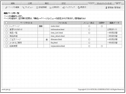 | 公開中 | 公開中のページには「○」が表示されます。 |